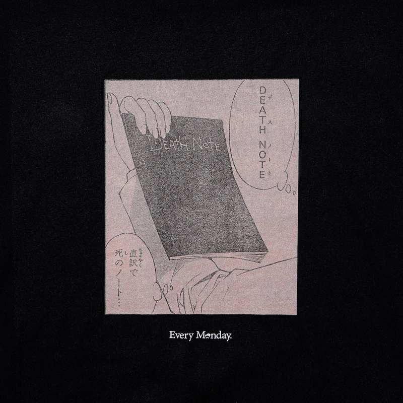 「Our First Monday」シリーズから『DEATH NOTE』が登場。フロントにはタイトルロゴ、バックには記念すべき第1話の一コマをモチーフにしたデザイン。