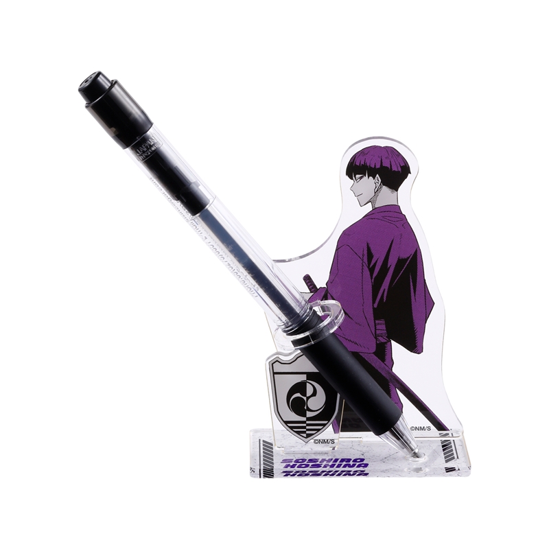 保科の刀を脇に差すようにペンが立てかけられるアクリルスタンド。デスク周りにも置きやすいサイズ感。