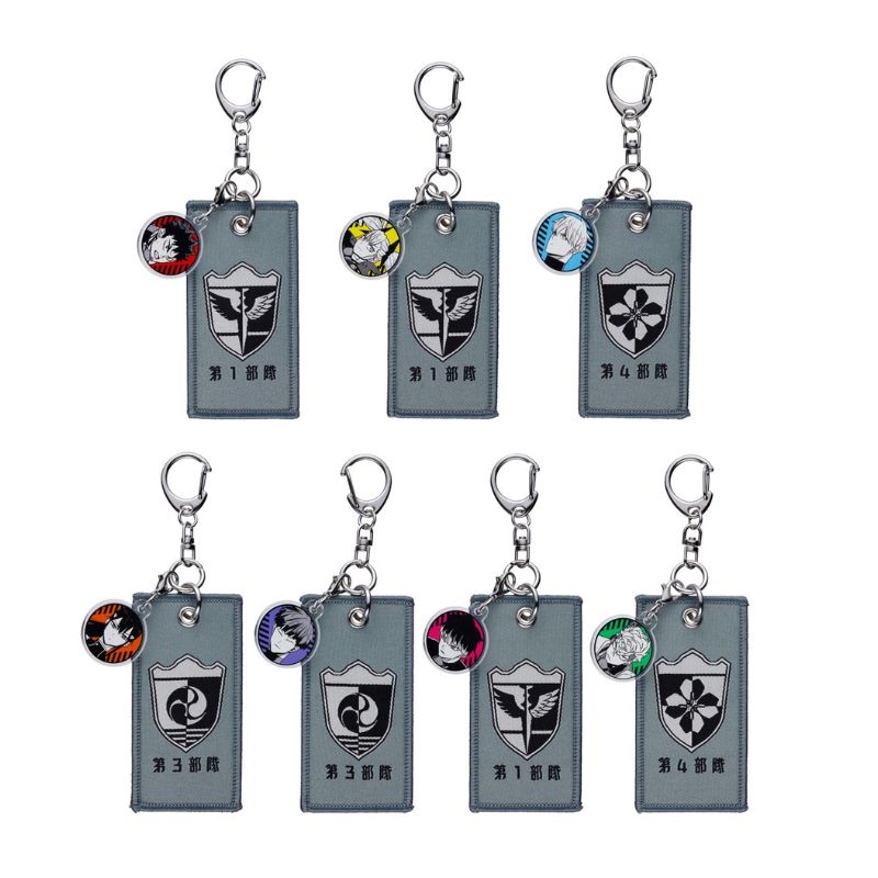 各キャラクターが所属する隊のエンブレムがデザインされた布製のキーホルダー。全てが揃うコンプリートセット。