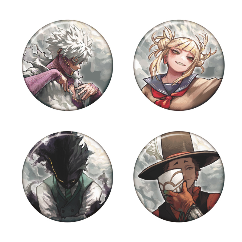 本展キービジュアル「ヒーローVS敵(ヴィラン)」に描かれたキャラクターを、缶バッジに。