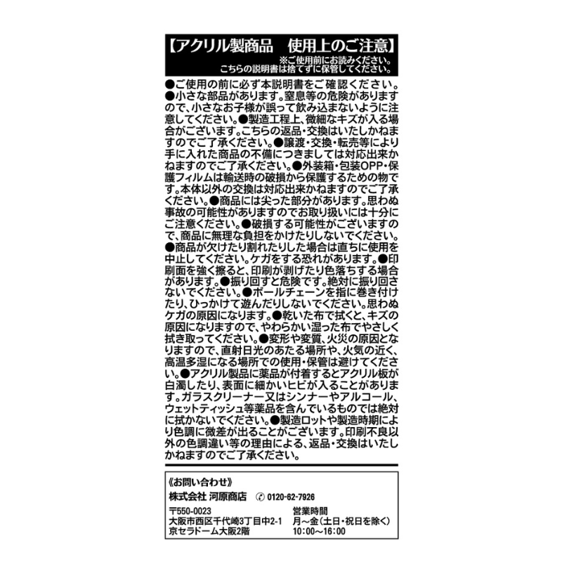 アクリルチャーム(1個):約幅40mm×高さ40mm×厚さ3mm