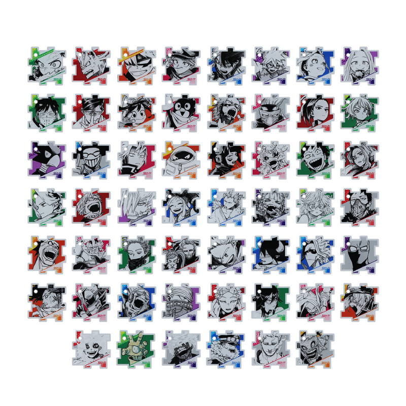 数多のヒーローとヴィラン(&作者)たちが、パズル状のアクリルチャームに!!