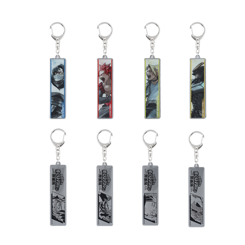 本展キービジュアル「ヒーローVS敵(ヴィラン)」のキャラクターイラストを表面に、本編キャラクターモノクロイラストを裏面にデザインした、キーホルダーコレクション!嬉しい全種セット!