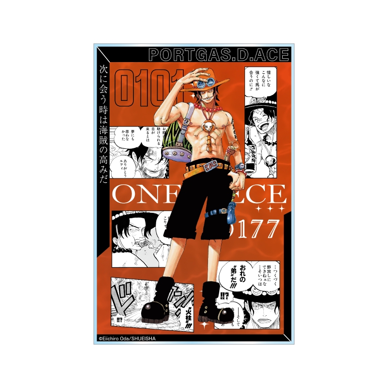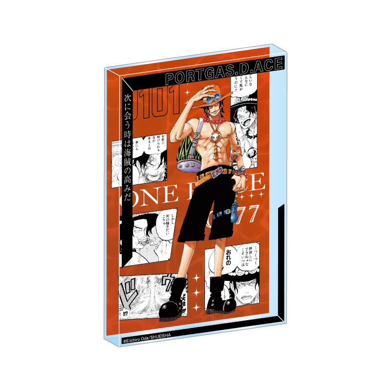 『ONE PIECE』ポートガス・D・エースのアクリルブロック!厚さ20mmのアクリルは存在感MAX!!ポートガス・D・エースのかっこいいカラーカットの背面には、名シーンのコマが散りばめられているぞ。インテリアにぴったり!