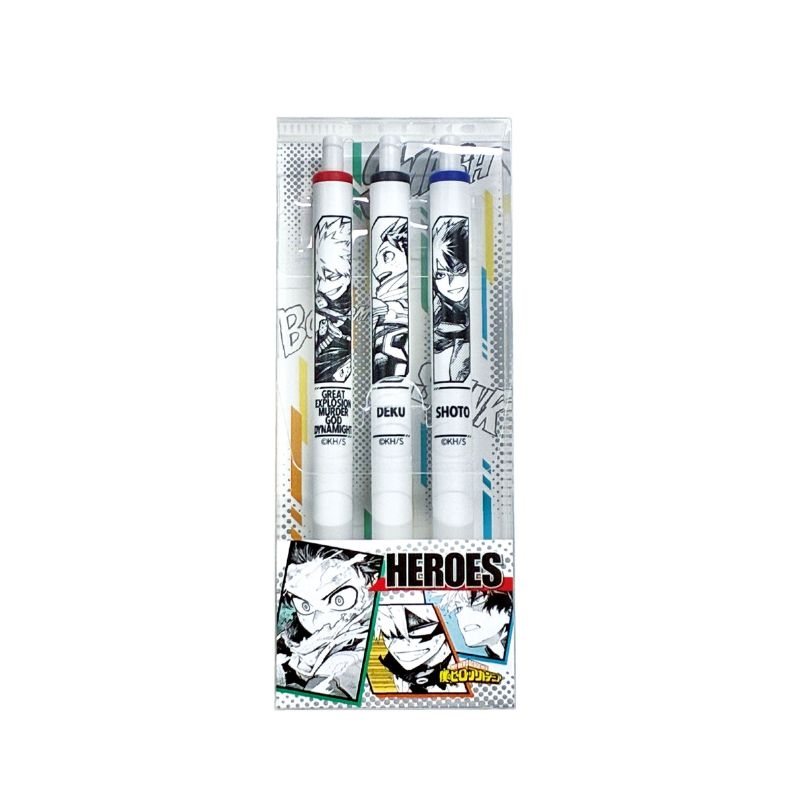 緑谷出久、爆豪勝己、轟焦凍の3人がそれぞれデザインされた、ヒーローペン3本セットが登場!