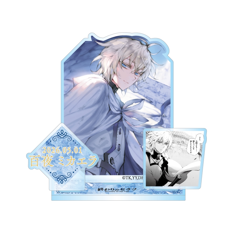 『終わりのセラフ』百夜ミカエラのカラーイラスト+名前&誕生日+作中の名場面のコマイラストが立体的に組みあがった、アクリルジオラマフィギュア!