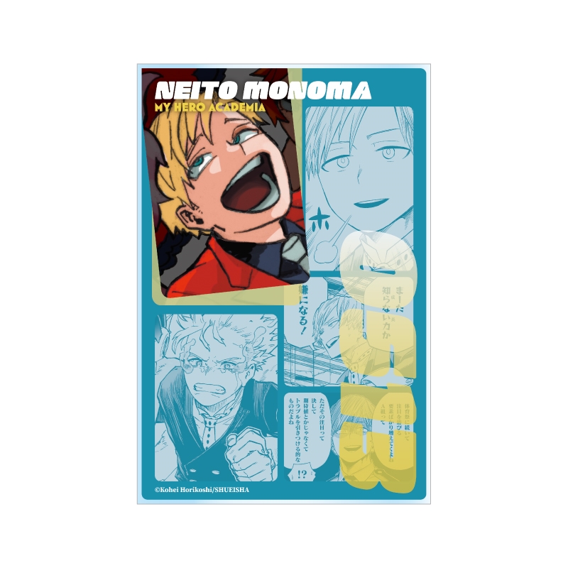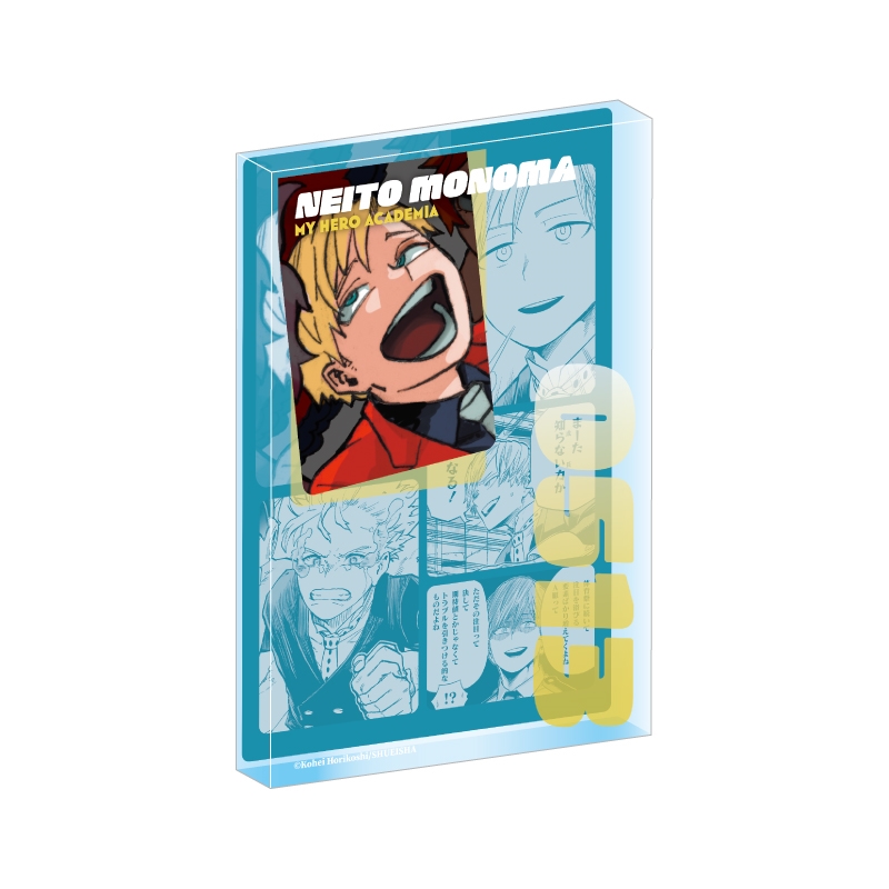 『僕のヒーローアカデミア』物間寧人のアクリルブロック!厚さ20mmのアクリルは存在感MAX!!物間寧人のかっこいいカラーカットの背面には、名シーンのコマが散りばめられているぞ。インテリアにぴったり!